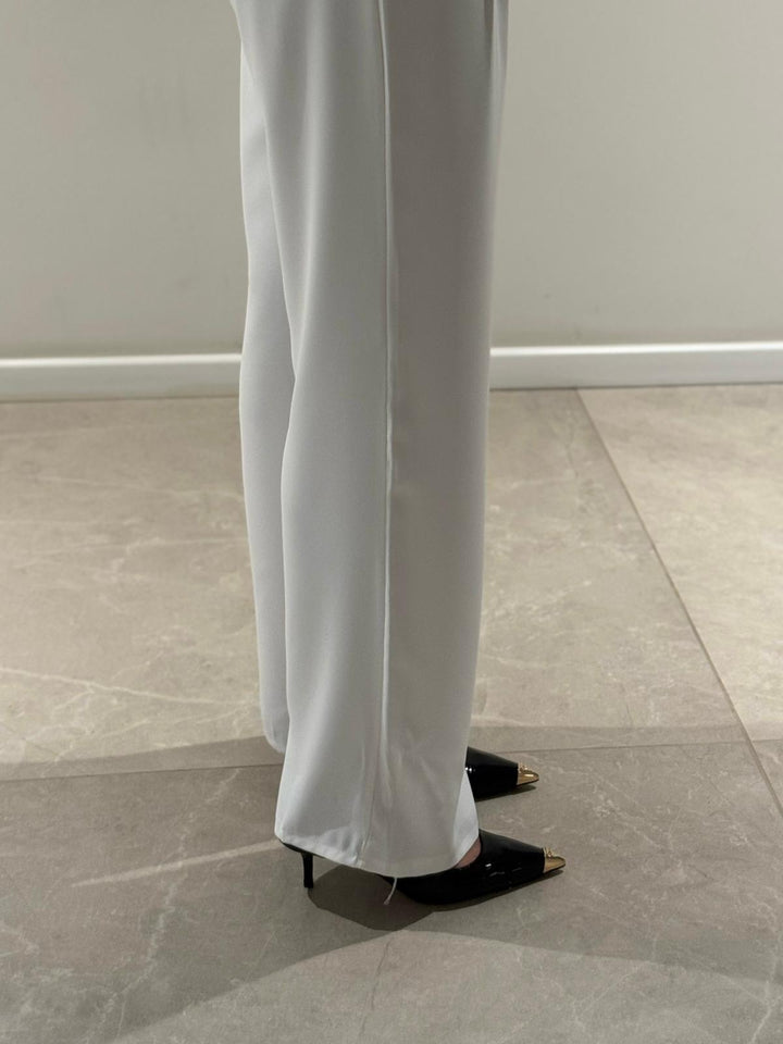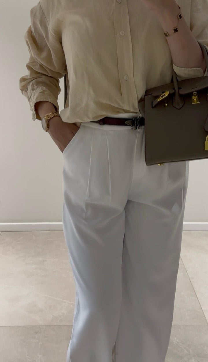 بنطلون قماش جورجيت ، ستريت ليچ وسيقان وسيعة