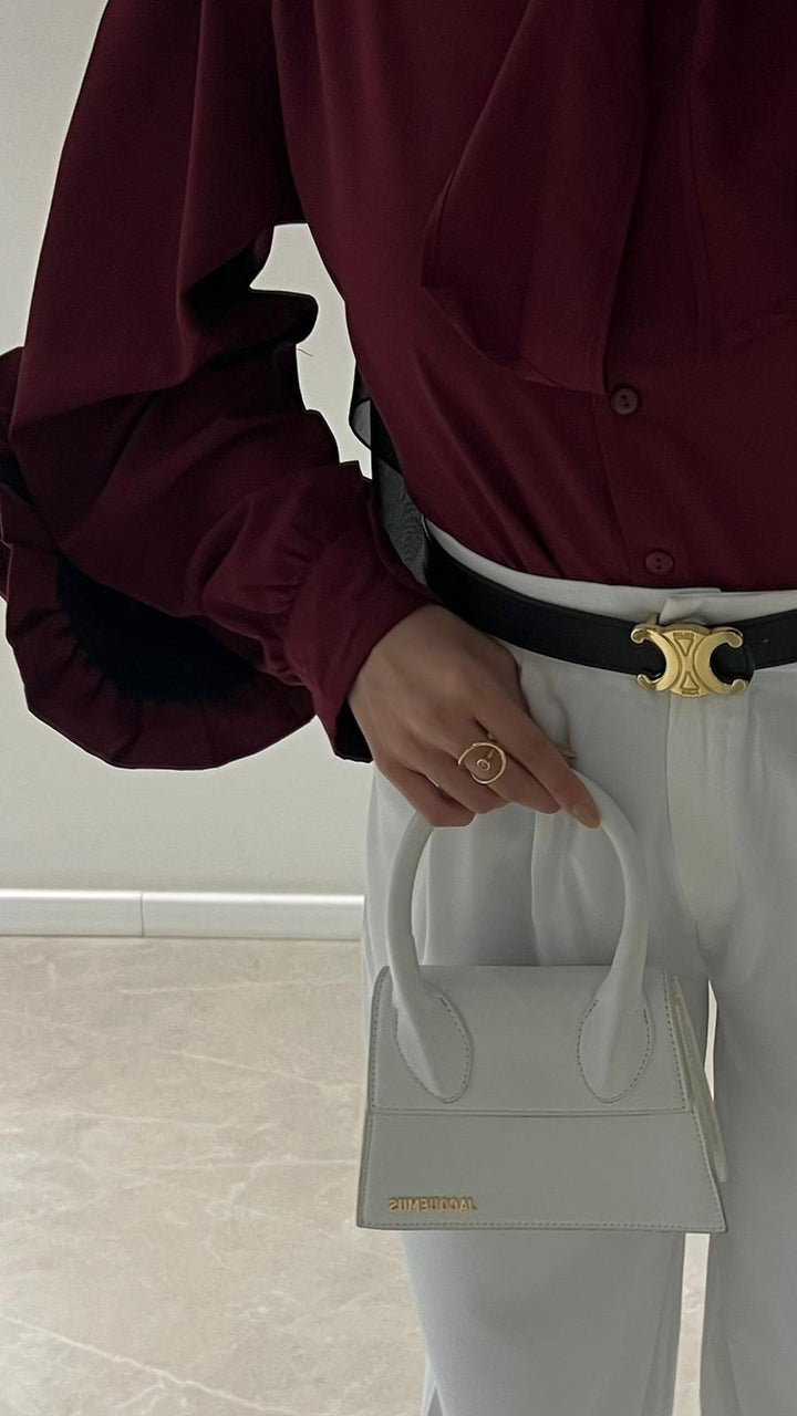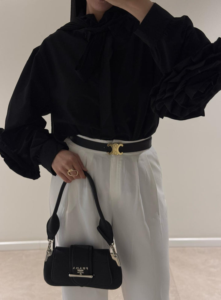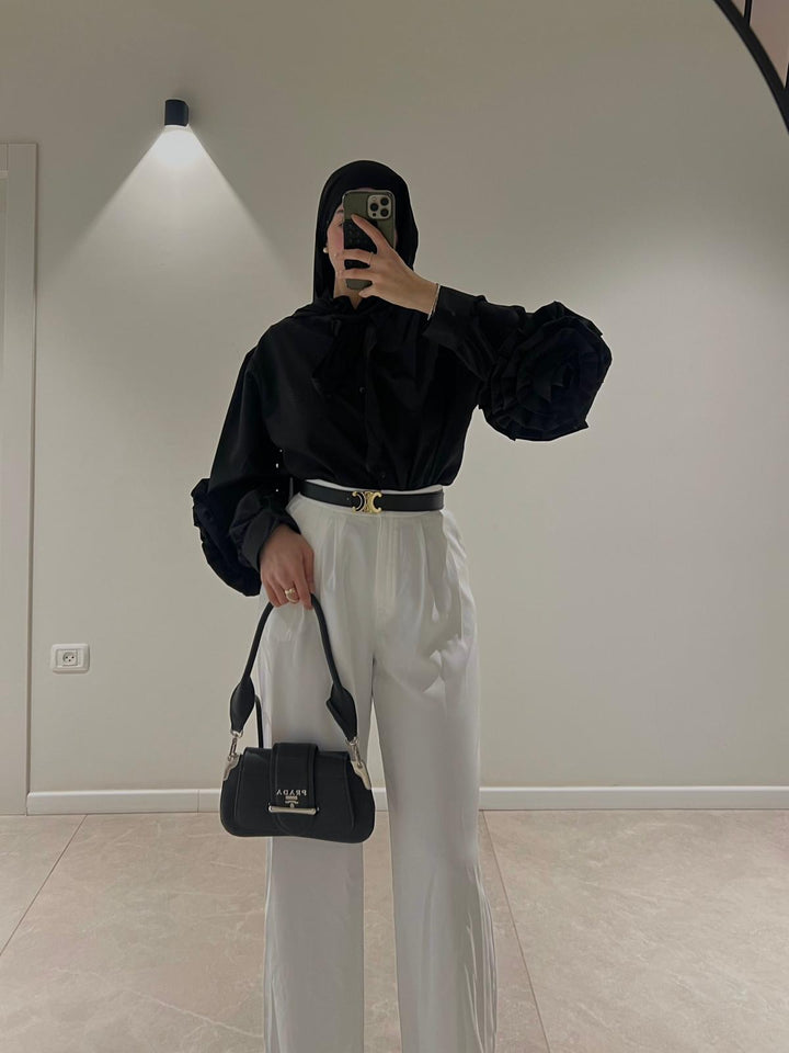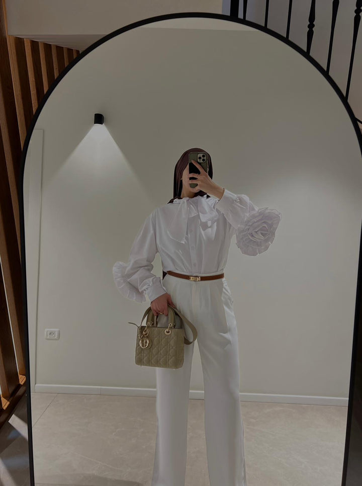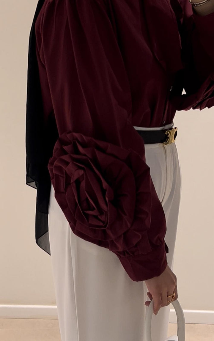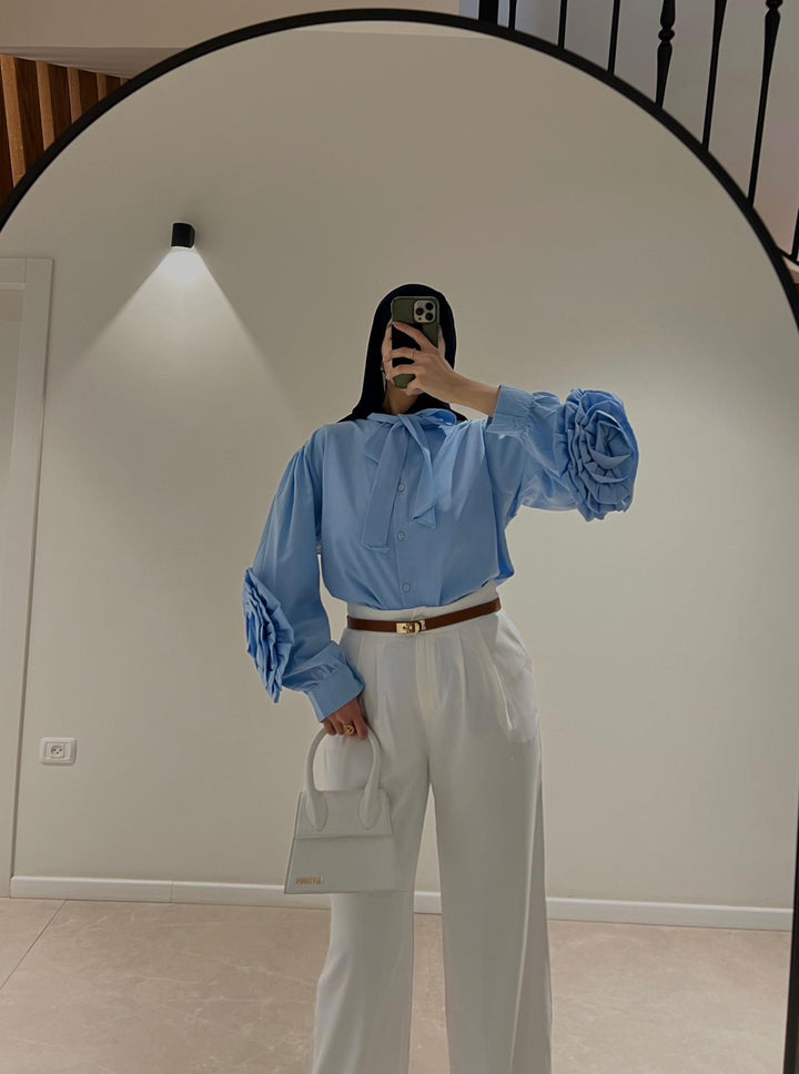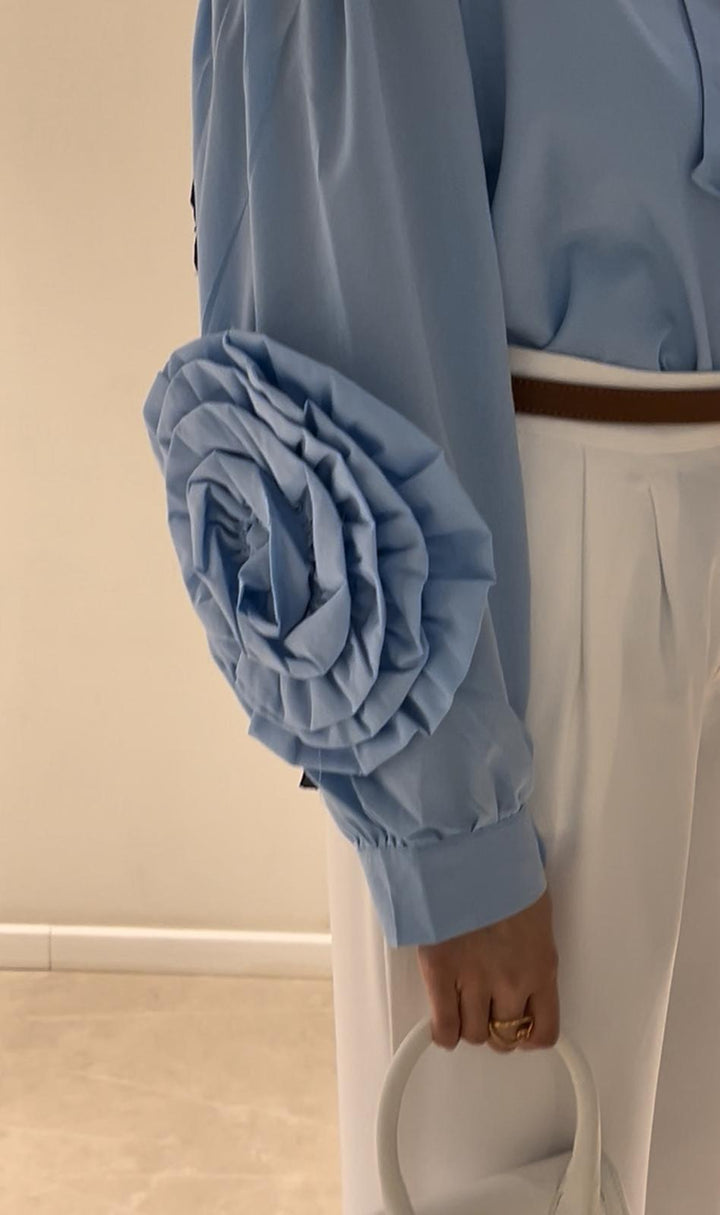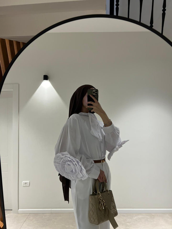 قميص اليجانت مع تفاصيل وردة على الاكمام