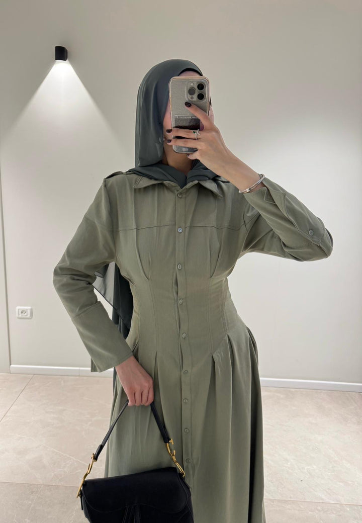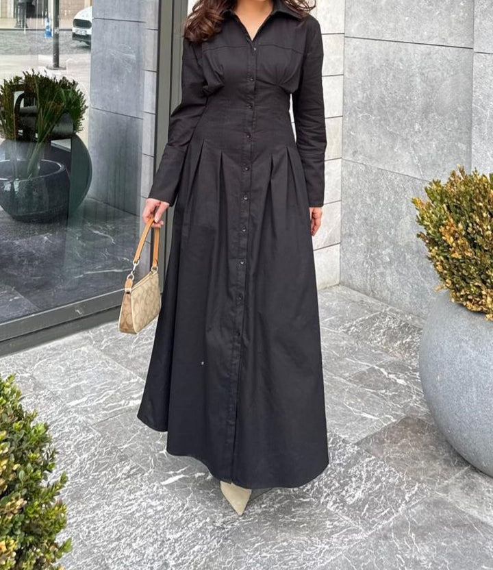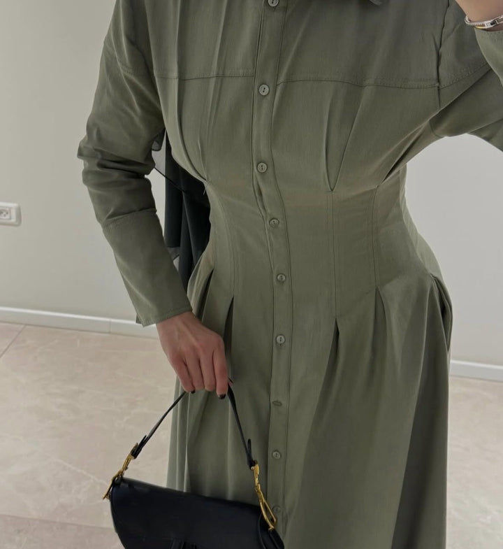 .فستان من قماشة الكريب الليكرا و ضيق من منطقة الخصر ليعطي حجم اصغر للخصر