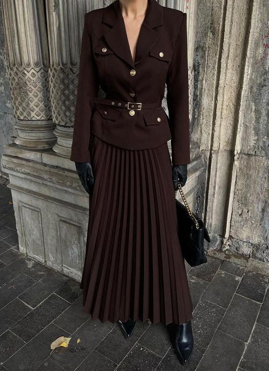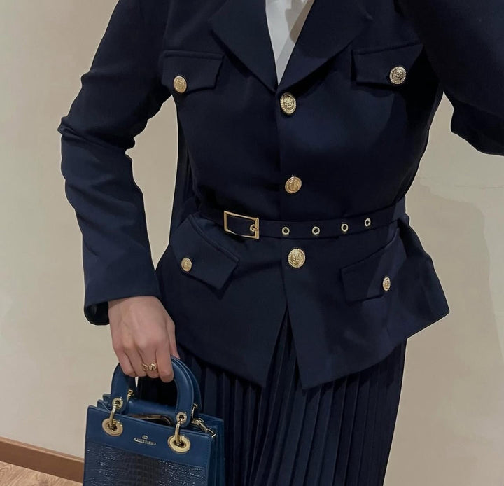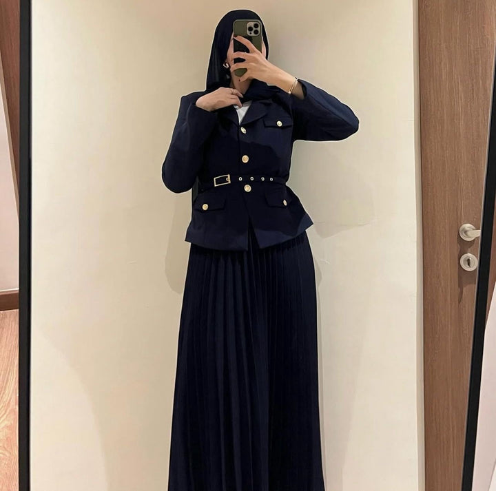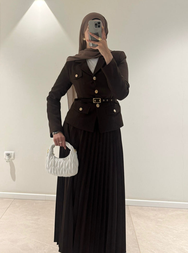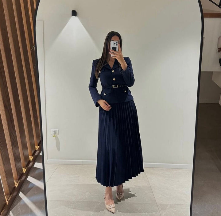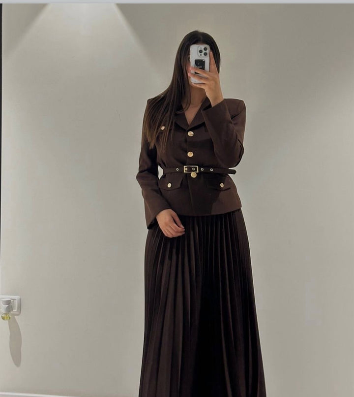 طقم بلازر مع ازرار وتنورة مع حزام اليجانت